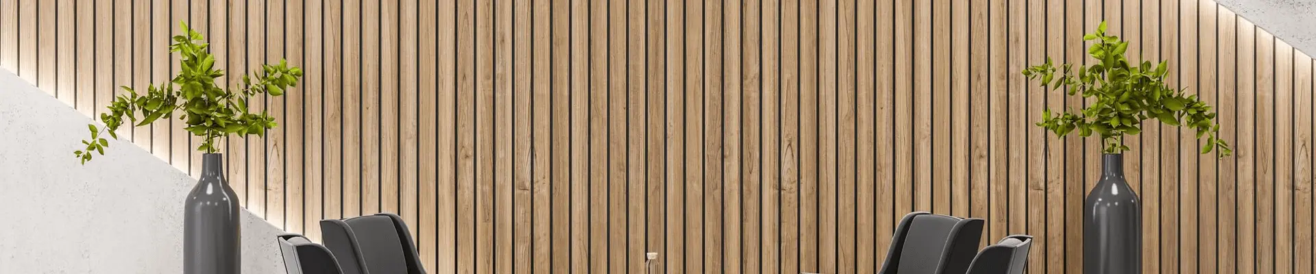 Use light-colored fluted wall panels for clean, vertical aesthetics.