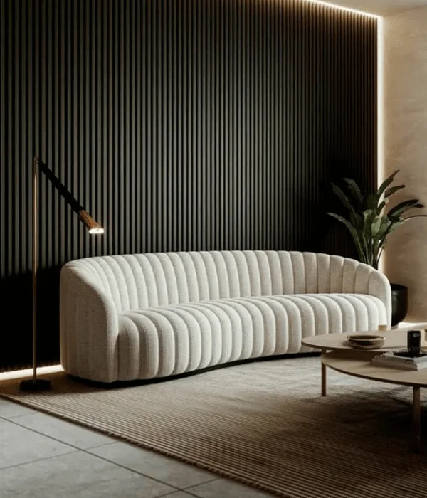 Use light-colored fluted wall panels for clean, vertical aesthetics.